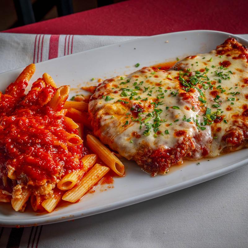 Sautéed breasts, tomato sauce, mozzarella,romano, penne tomato sauce