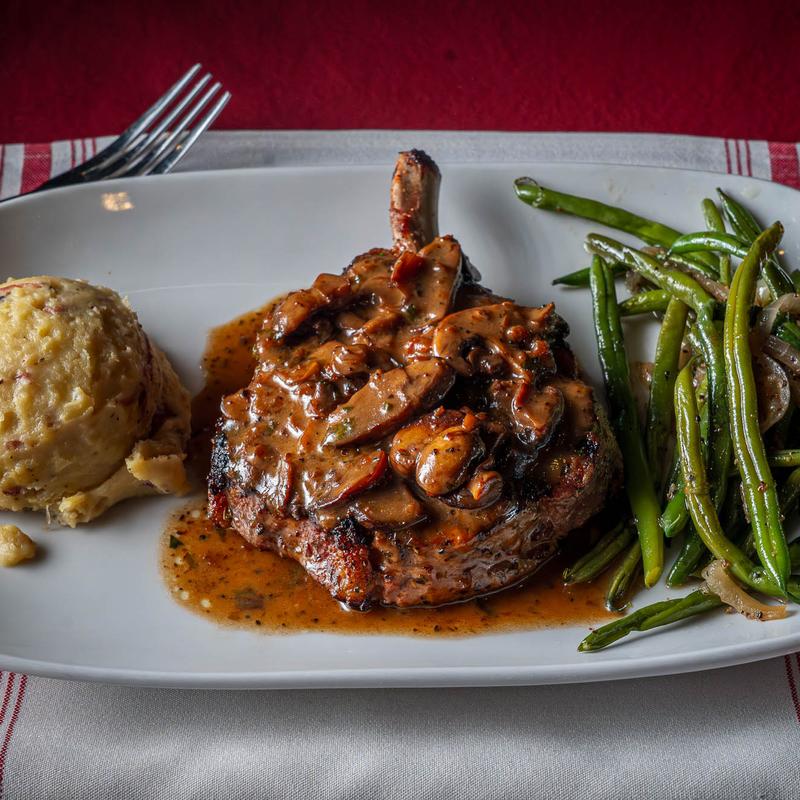 12 ounce bone-in rib chop, mushroom marsala